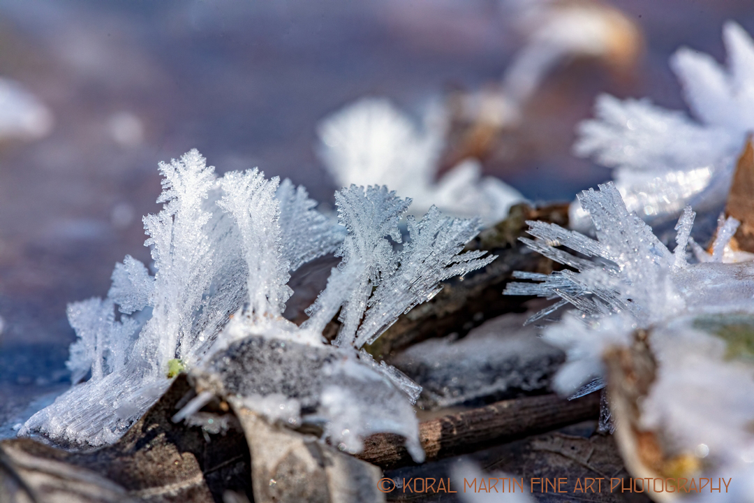 When the weather gets really cold – single digit. Ice crystals form on vegitation along and in the edges of lakes and ponds. The formations are amazing.