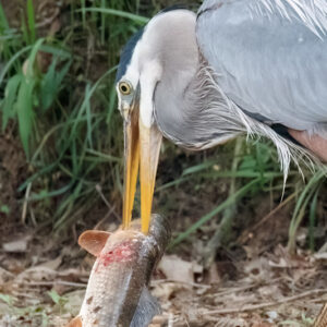 Heron with Fish Close