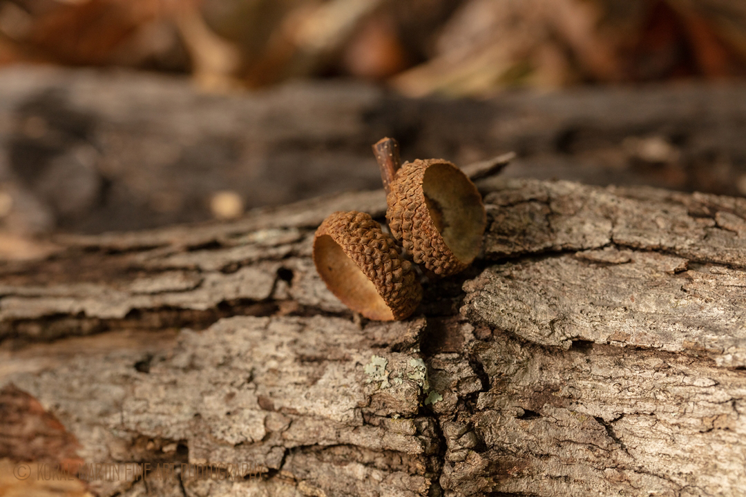 Macro photograph of an Acorn on Bark taken at the Busiek Forest in Missouri