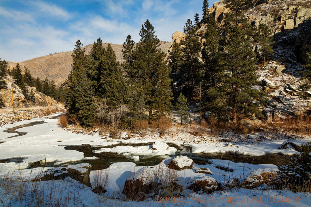 The Cache la Poudre – North Park Scenic Byway takes you from west of the Continental Divide into the beginning of the northern plains of Colorado near Fort Collins through Arapaho/Roosevelt National Forest.Cache la Poudre “The Poudre” River forms a historic route through the Rocky Mountains, used by native Americans and French fur trappers who gave the river it’s name – “the powder’s hiding place”.The Poudre is Colorado’s only federally designated National Wild and Scenic River, and is a favorite of rafting companies and fishermen and for me a favorite spot for photography all year round. This is a wonderful Colorado Winter Snow Scenes.