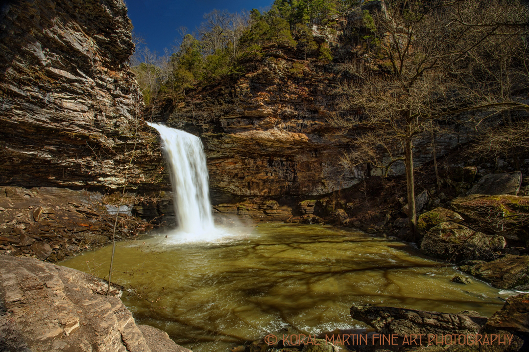 Cedar Falls is located at Petit Jean State Park. To see it from the base you must hike down a strenuous trail but it is worth it. The falls is a 95 foot fall and one of the most spectacular waterfalls in Arkansas.