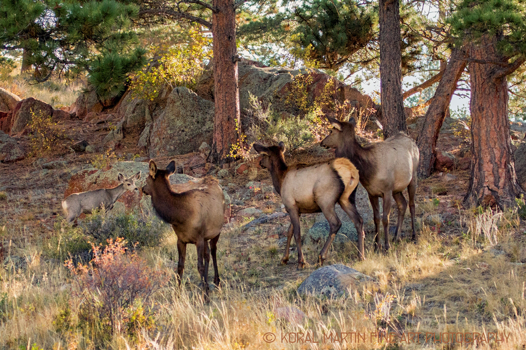 These elk and the deer fawn were wondering around at Moraine Campground in Rocky Mountain National Park in Colorado. This was right hear our campground and we got a front row seat. The fawn had gotten separated from its mom and it didn’t know what to do when the elk showed up.