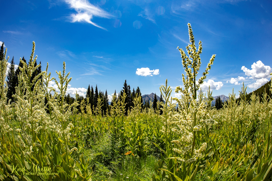 This year was a bumper year for wildflowers in Colorado due to the amount of snow that was received over the winter. The False Hellebore were thick in the upper regions of the Snodgrass Trail and were even towering over us as we hike. This trail is located off of Gothic Road north of Crested Butte near the Kebler Pass.