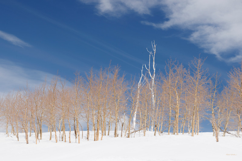 Ghostly — for some reason this view really touched me. I was driving Scenic Highway 12 in Utah. I had not expected all the snow but was loving it. I then found a stretch where there had been a fire several years ago. The aspen regrow faster than other trees and were already pretty good size trees. There was just one dead tree standing above the rest in this area and it was almost completely white – it felt like a ghost standing among the other live trees.