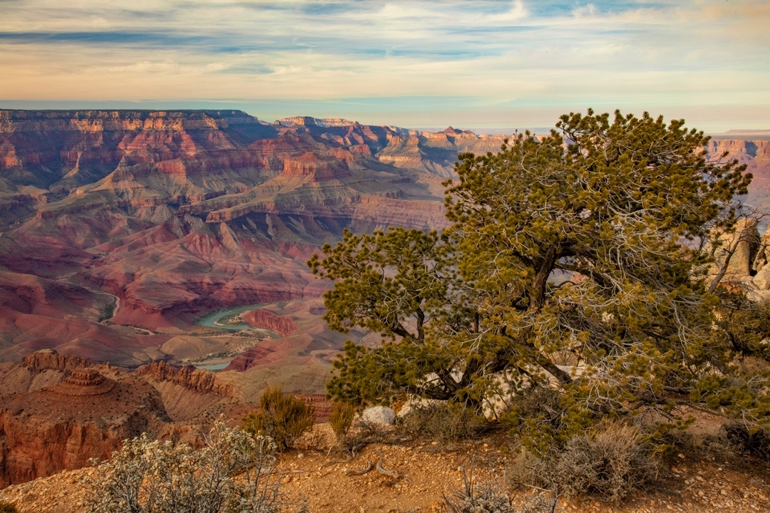 The South Rim of the Grand Canyon has spectacular scenic views and vistas. We enjoyed driving and hiking all along the canyon and each view was different. This Lipan Point View was a favorite as you could see the Colorado River way below winding around the colorful scenic canyon.