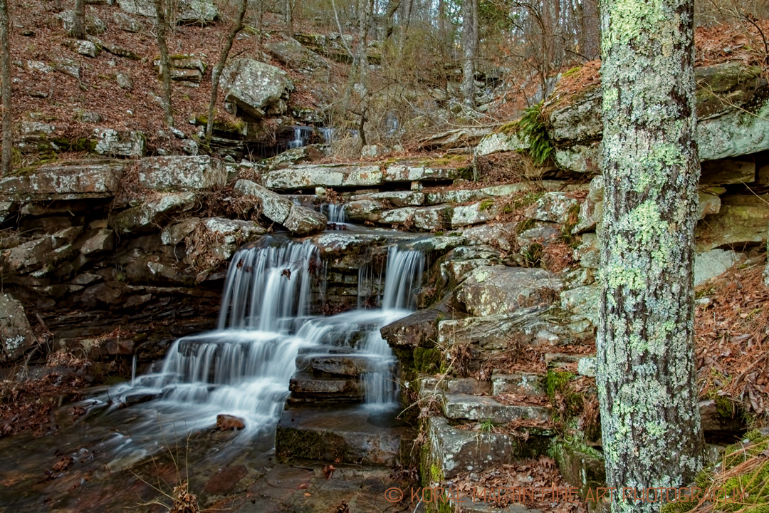 Hardy Falls is located at Mt Magazine in Arkansas. If you don’t know to look for it, you will miss it as you drive down the mountain. It is just off the road and the creek flows under a wonderful stone bridge.