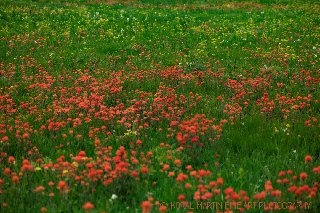 Indian Paintbrush and yellow wildflowers taken at Woods Prairie. Love the colors of the prairie in the summer time.