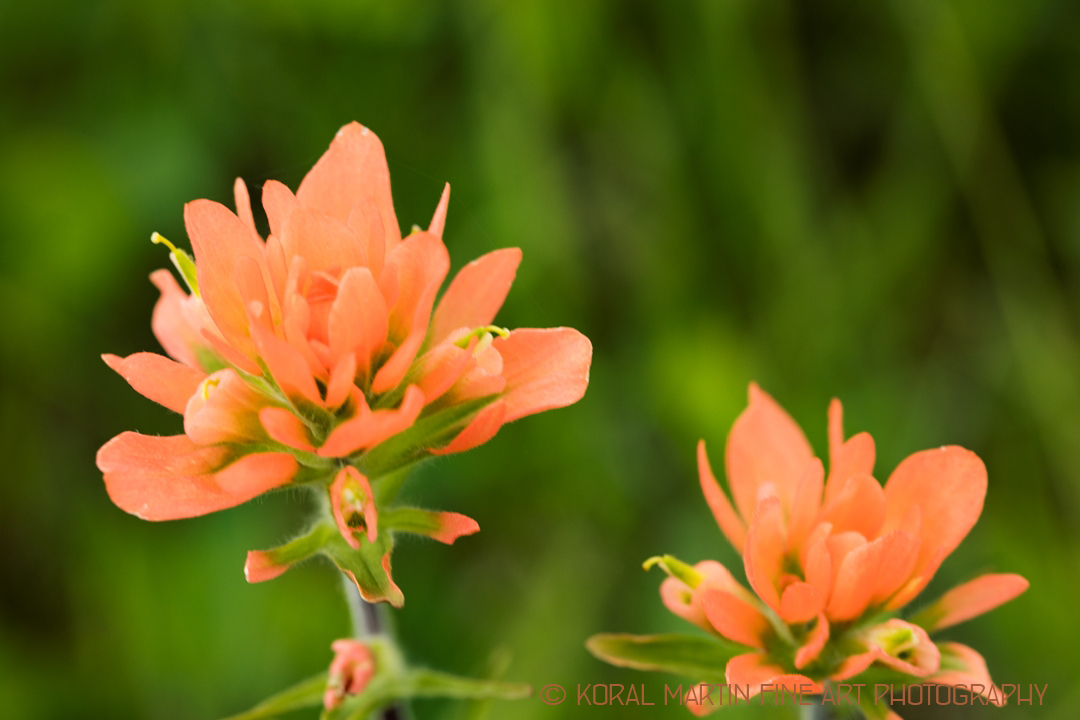Castilleja, commonly known as Indian paintbrush or prairie-fire, is a genus of about 200 species of annual and perennial herbaceous plants native. The local Indian paintbrushes are usually a dark orange to orange red. This group of Indian Paintbrush was taken at Woods Prairie in Missouri