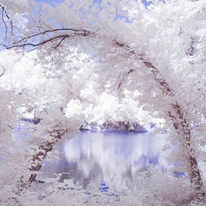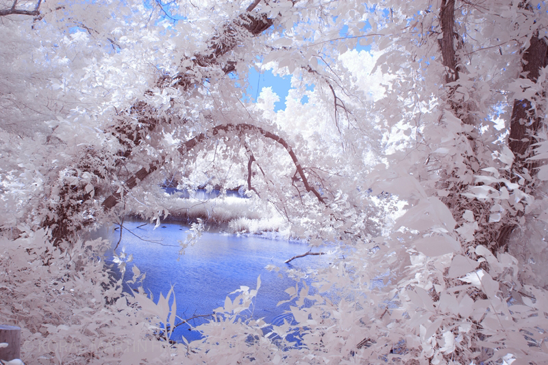 Infrared photography is a look into a world the naked eye doesn’t see. The human eye can see wavelengths from about 400nm-700nm (from purple to red); infrared is the light beyond 700nm. IR photography can be done with either infrared film, or a digital camera, and typically involves near infrared light in the 700nm to 1200nm range. This is different than thermal infrared, which images far into the infrared spectrum. Infrared photography produces some very distinct effects which make them aesthetically pleasing. The most striking difference is the “Wood Effect”, an effect where leaves reflect light giving them a bright white look.