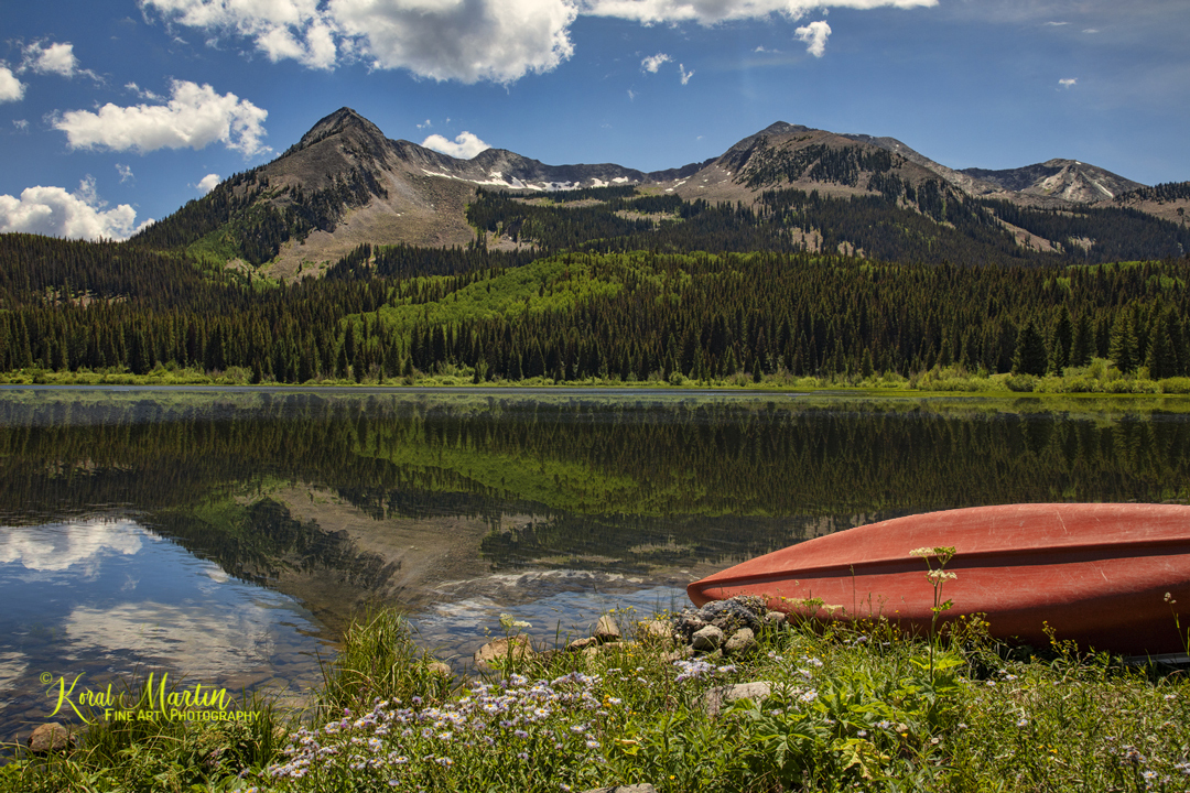 I love most mountains but the Colorado Mountains are what seem to really do it for me. They seem to call my name. AND if you can add some water, maybe a winding stream or a lake, some wildflowers… that makes it even better. This was from a summer trip to Colorado in the Crested Butte Area along the Kebler Pass Road. It is along the Lost Lakes Trail. The canoe on the edge made me want to get out on it and really enjoy the views and I just loved the reflections of the mountains in the lake. It brings peace and calm to my soul.