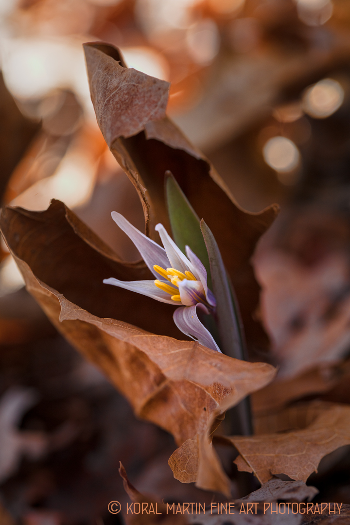 One of the first early blooming spring wildflowers is the trout lily. This was nestled in a leaf. I located this gem while hiking at Wildcat Glades in Missouri. There were several of these interesting trout lilies coming up but this one was nicely framed and made a special capture.