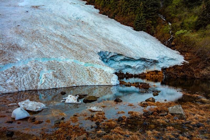 As soon as I arrived in Alaska I took off towards Seward stopping just about every where I could. This stop was a trail along 5 Fingers Creek of of Portage Glacier Road. Loved the waterfall run-off and the snow melting with reflections. What a great area. I had so much fun exploring!