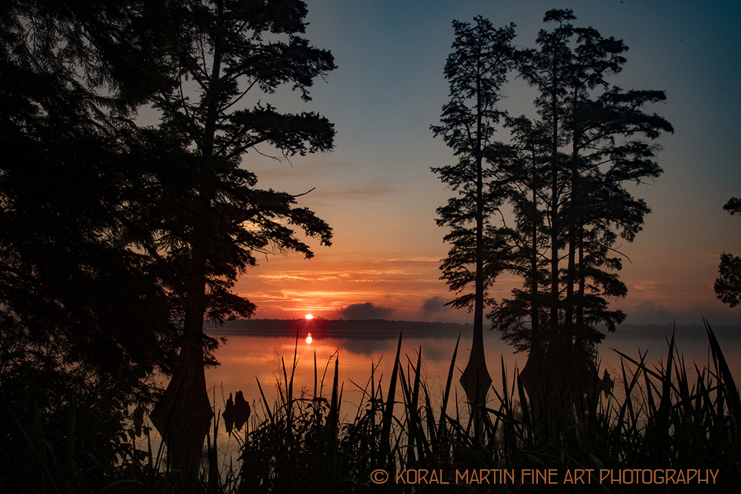 Sunrise at Reelfoot Lake through the Cypress Trees.