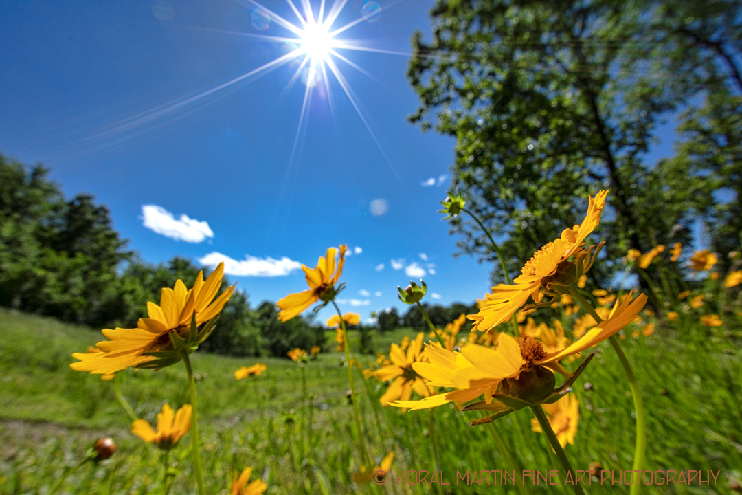 It is fun to be able to capture flowers up close but to also see the environment around them. With a special wide angle lens I was able to capture the these wildflowers with flowers around and the sky. This was taken at Talbot Conservation Area